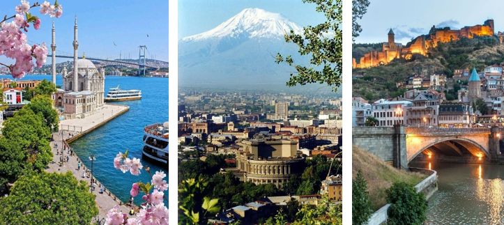 Descubra a história, cultura e beleza da região do Cáucaso e da Anatólia em um emocionante roteiro pela Turquia, Armênia e Geórgia. Esta viagem lhe permitirá explorar cidades repletas de monumentos históricos, desde majestosos palácios e igrejas até mercados tradicionais vibrantes. Você conhecerá as raízes antigas de cada país, seu patrimônio único e o calor de seu povo, enquanto desfruta de paisagens impressionantes e experiências culturais inesquecíveis. Uma travessia extraordinária que une a magia do Oriente e do Ocidente, explorando três países cheios de história, tradições milenares e cenários naturais de uma beleza singular em uma viagem exclusiva e inesquecível. 12 dias de viagem passando por Istambul, Yereván, Gueghard, Garni, Yereván, Echmiadzín, Zvartnots, Seván, Dilijan, Sadakhlo, Tiblisi
